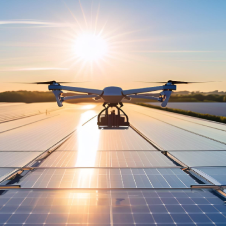 无人机搭载水箱与便携式加压喷洒装置对光伏组件进行清洗,一次作业带水50L左右;